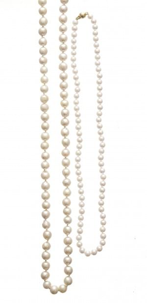 3121. Lot de deux colliers deux rangs de perles et de perles d'eau dou...