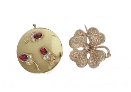 Or 585, 56 zolotnik, D 2,5 cm, 5 g. On joint une broche ancienne...