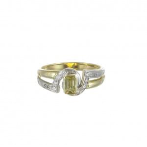 3192. Bague sertie d'un saphir jaune taille rectangle entouré de diama...
