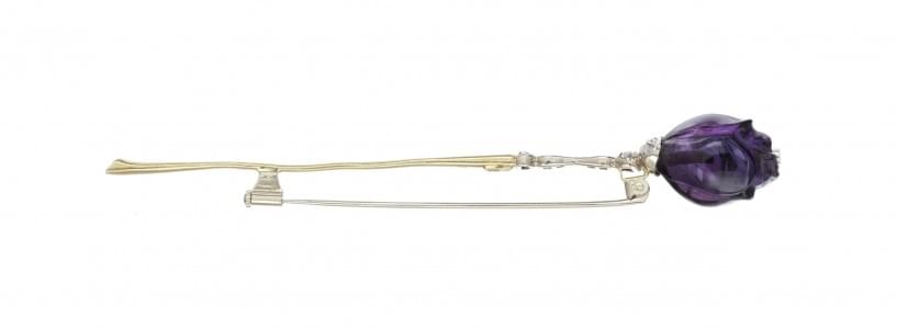 3227. Epingle terminée par une fleur en améthyste rehaussée de petits...