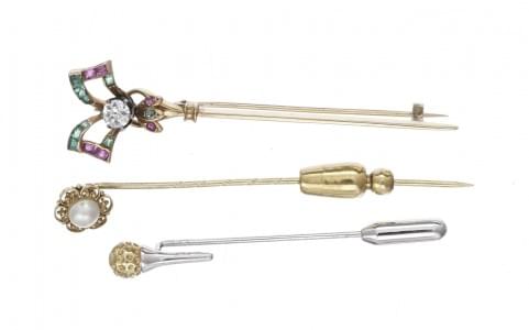 Or 750. On joint deux épingles en or et or gris 750, poids brut...