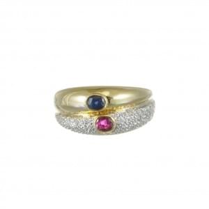 3265. Bague toi et moi sertie d'un diamant taille ancienne et d'un rub...
