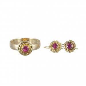 3260. Ensemble d'une bague et de boucles d'oreilles serties de rubis s...