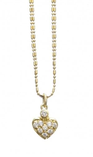 3285. Chaîne à maille fantaisie retenant un pendentif coeur serti de d...