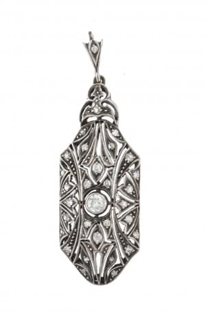 3268. Pendentif rond Art déco serti de diamants taille rose entourés d...