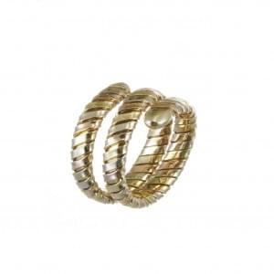 3295. Bague serpent stylisé à maille tubogaz trois ors