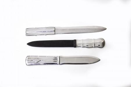 3410. Suite de trois ouvre-lettres à manches côtelés