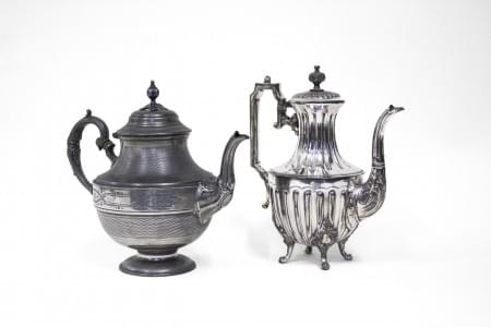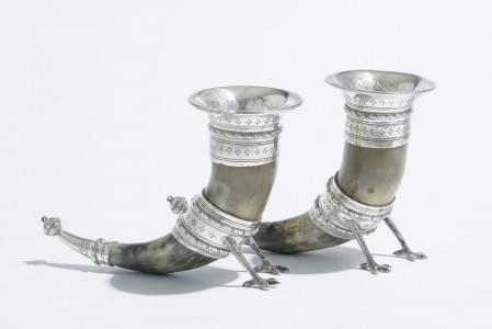 3482. 2 coquetiers, tasse de poupée, taste-vin miniature et broche