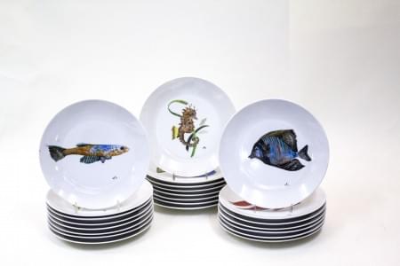 Porcelaine à décor de champignons pour l'un et d'un léopard pour...