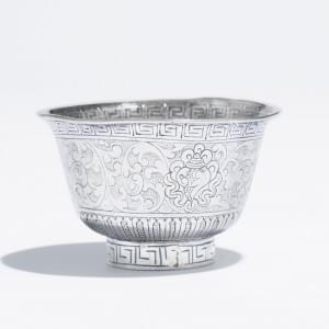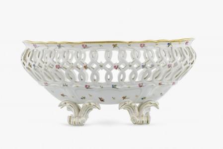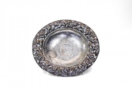 3462. Coupe ronde à bordure ondulée ornée de perlettes et ajourée de t...