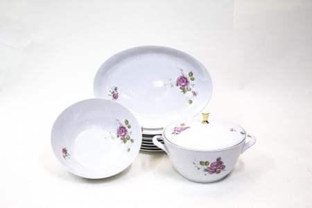 3449. Service à dîner à marli rayonnant et décor de rose, Bavaria