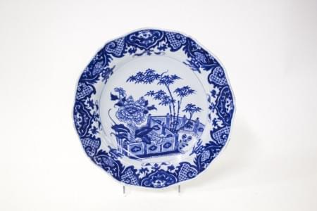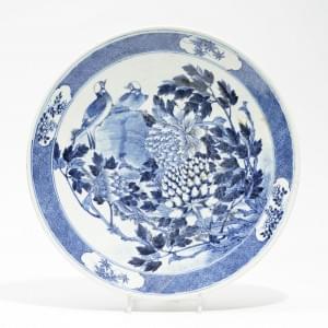 Porcelaine bleu blanc à décor de fleurs, D 21,5 cm
