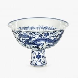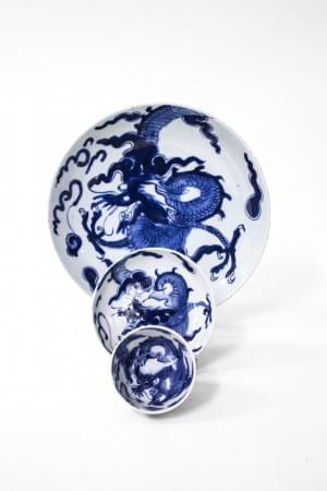 Porcelaine bleu blanc à décor de dragons, D 15,5 cm