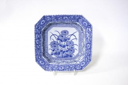 Porcelaine bleu blanc à décor de fleurs et feuillage, 27x27 cm