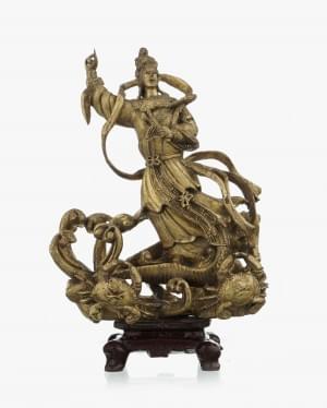 Bronze à décor des huit immortels et Shoulao, D 25 cm