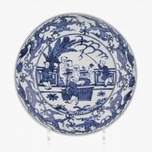 Porcelaine bleu blanc à décor d'enfants et de dragons, D 23 cm