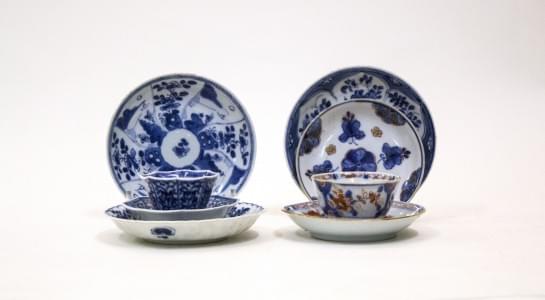 Porcelaine provenant d'une épave maritime, D 10,5 et 15 cm