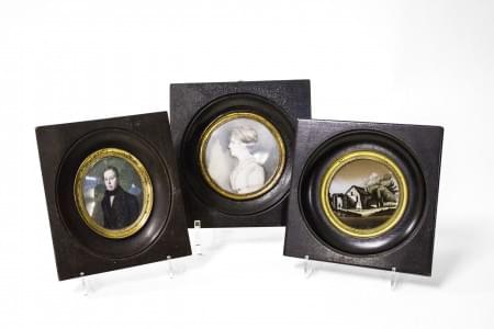 Deux miniatures sur ivoire et une sous verre, D de 6 à 8 cm