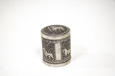 3687. Boîte cylindrique à décor d'animaux et rinceaux, Inde