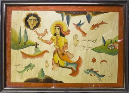 Déesse de la mer-sirènes, peinture sous verre, 33x48 cm