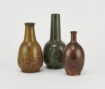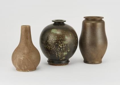 Trois grands vases, céramique émaillée monochrome brun, noir et...