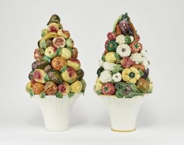 1067. Paire de pyramides de fruits, Italie, circa 1950
