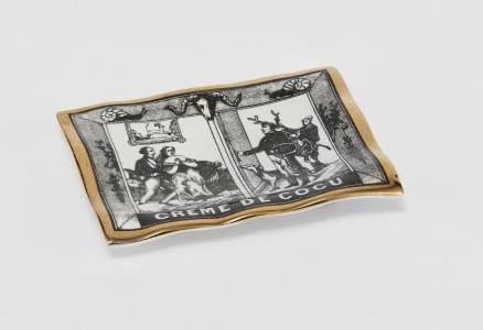 Plat en verre et porcelaine sur talon en métal, édition limitée...
