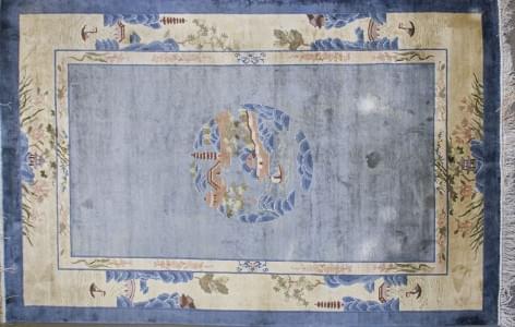 Laine à décor d'un médaillon central et médaillons latéraux d'oi...