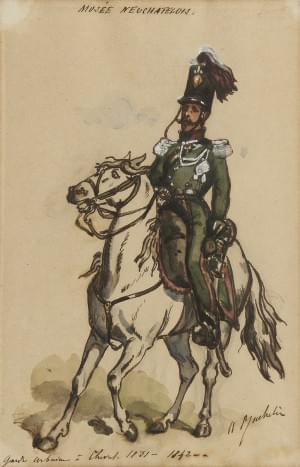 Garde d'homme à cheval et garde urbaine à cheval, deux gouaches...
