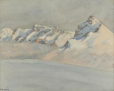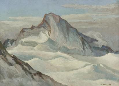 Montagne enneigée, huile sur toile, signée A Ramseier, 60x80 cm