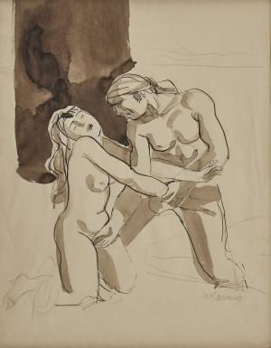 L'enlèvement et Le Viol du pirate, deux lavis sur papier signés,...