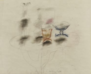 Nature morte, mine de plomb et lavis sur papier, signée et datée...