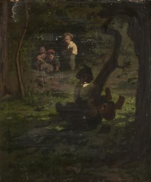 Le rémouleur, huile sur toile, signée, 40x64 cm