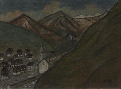 Evolène, huile sur toile, signée et datée 41, 50x62 cm