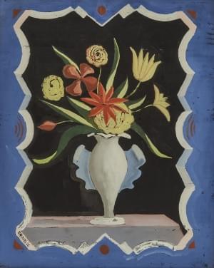 Bouquet de fleurs dans un vase, huile sur pavatex, signée au dos...