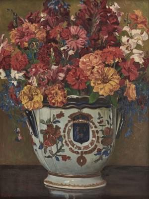 Bouquet de fleurs dans un vase en porcelaine, 91x70 cm
