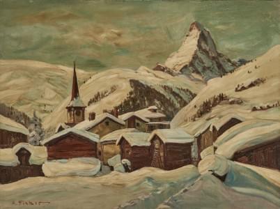 Zermatt et le Cervin, huile sur toile, signée A.Fisher, 60x80 cm