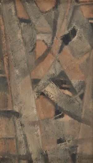 Abstraction, huile sur toile, signée et datée 63, 33x19 cm