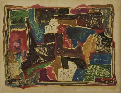 Abstraction, technique mixte sur papier, signée, 45x64 cm