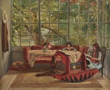 Scène d'intérieur avec deux jeunes filles, huile sur toile, 49x6...