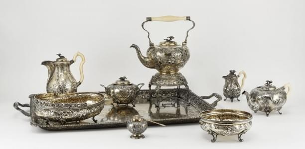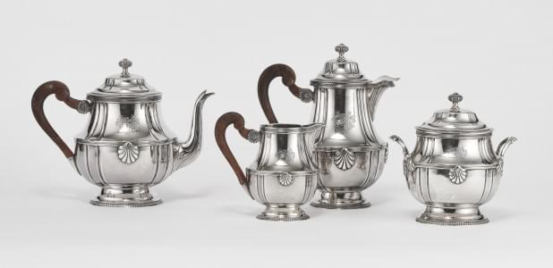 463. Service à thé à motif coquille armorié Morin-de Turckheim