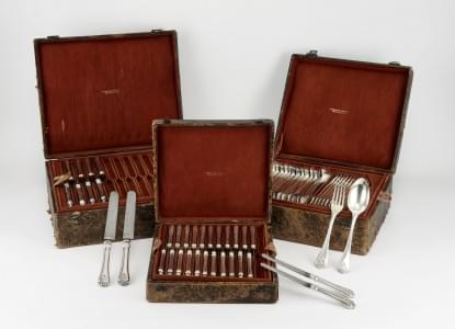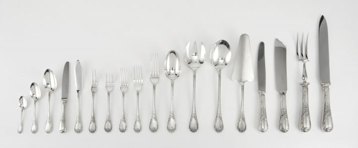 Christofle, métal argenté, comprenant: 12 fourchettes, 12 cuillè...