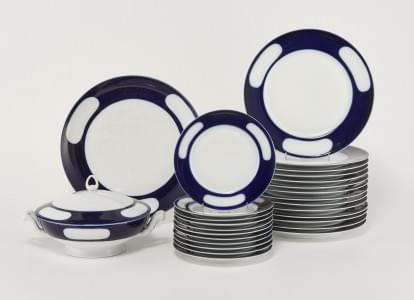 471. Service à dîner à marli bleu nuit et cartouches blancs en réserv...