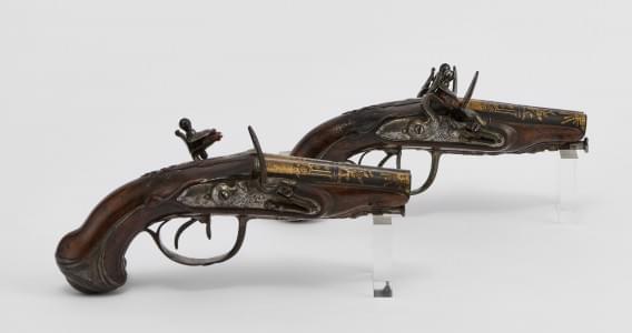 577. Paire de pistolets à double canon, Saint Etienne, XVIIIe s
