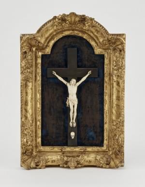Ivoire sculpté, encadrement en bois sculpté de la même époque, H...