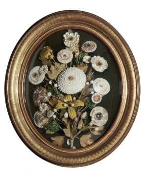 586. Composition en coquillages figurant un bouquet de fleurs, circa...