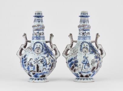 Faïence à décor de personnages en camaïeu bleu et manganèse, H 3...