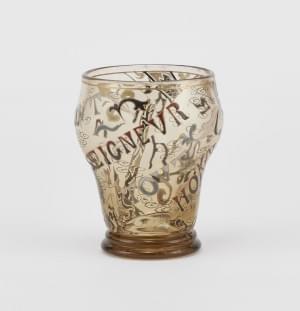 Verre émaillé polychrome avec l'inscription " A tout seigneur to...