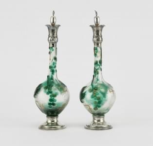 Verre dégagé à l'acide à motif de baies vert et or, monture en a...