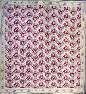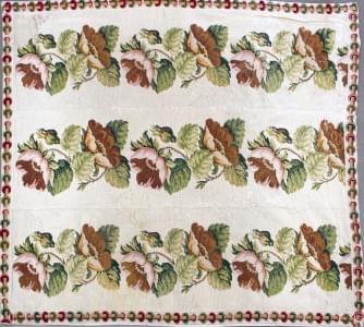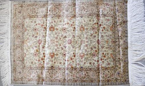 Soie à décor de motifs floraux sur fond beige, signé, 97x130 cm